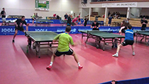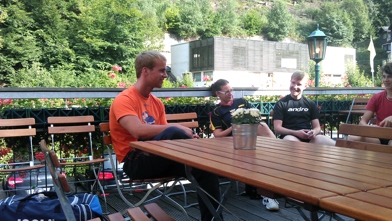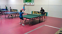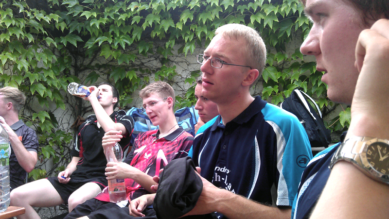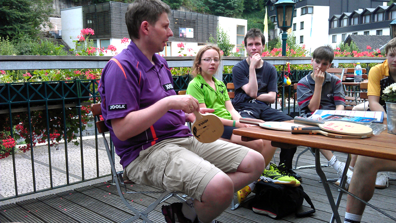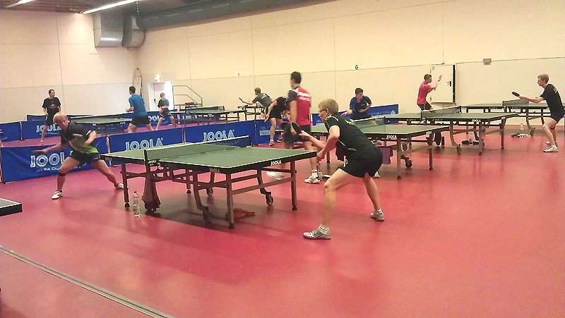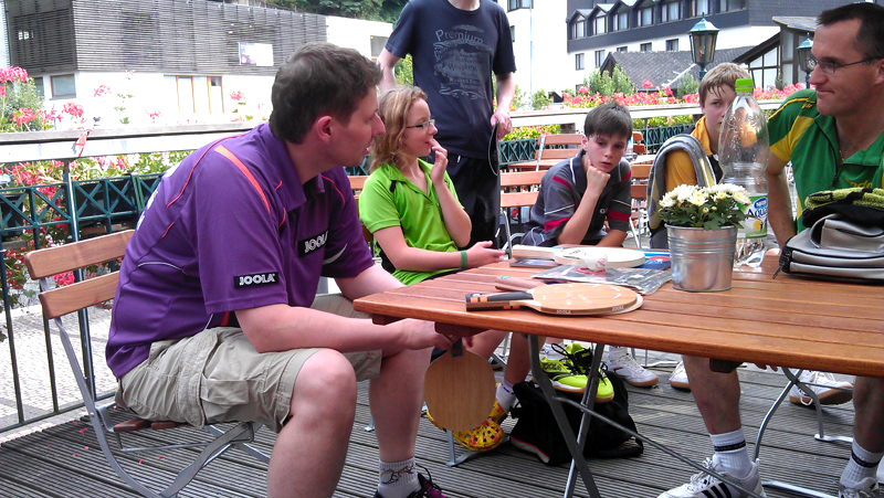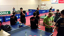 Nach der ersten Trainingseinheit am Montag Morgen konnte man den Profis (hier Dennis Müller und Pierre Alexander Burger aus der 2. Bundesliga am vorderen Tisch) beim Training zuschauen