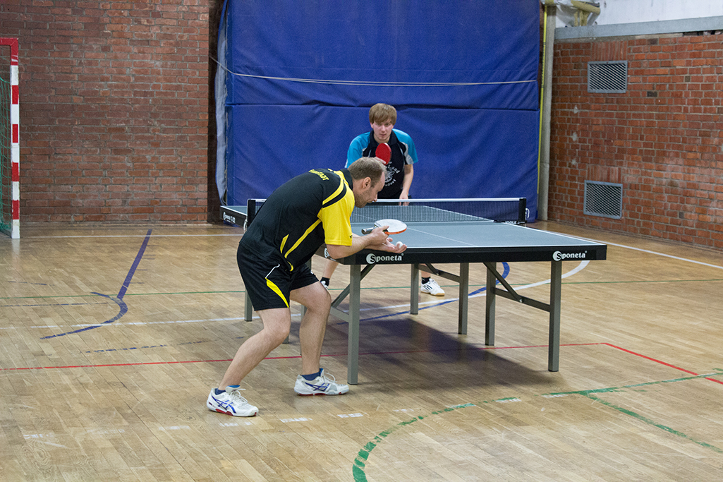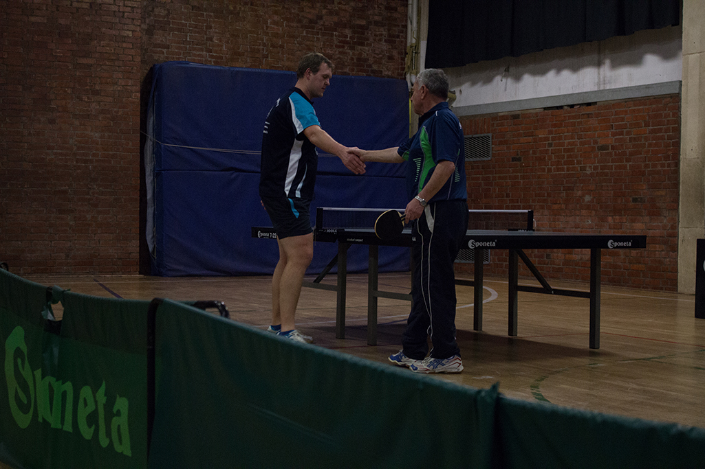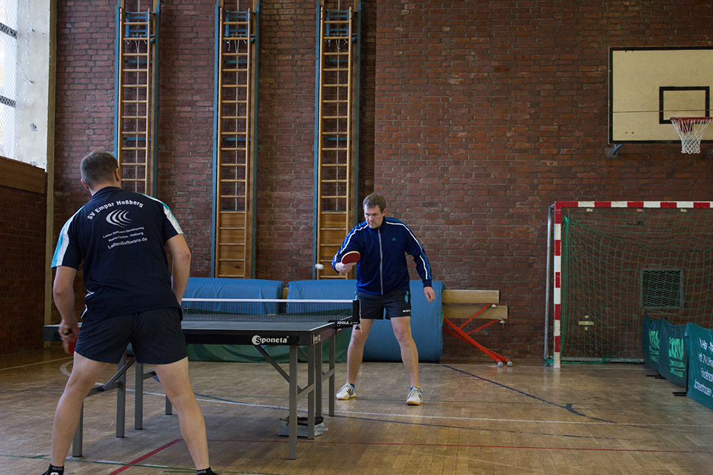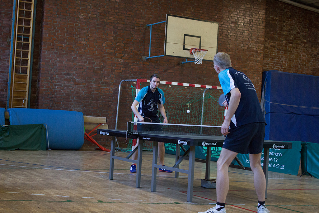 Auch Spitzenspieler Andy Schmidt und Paul Plonné machen vor Spielbeginn noch ein paar Schläge