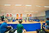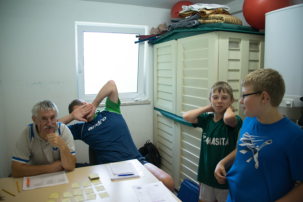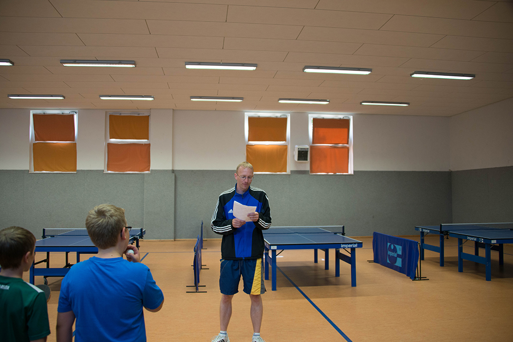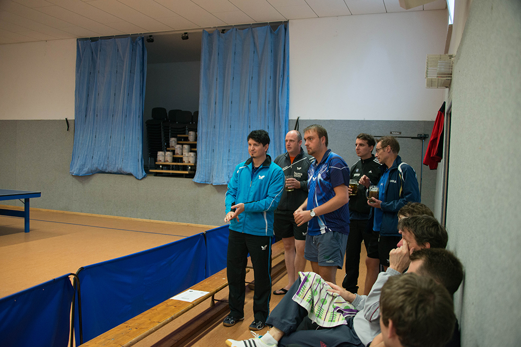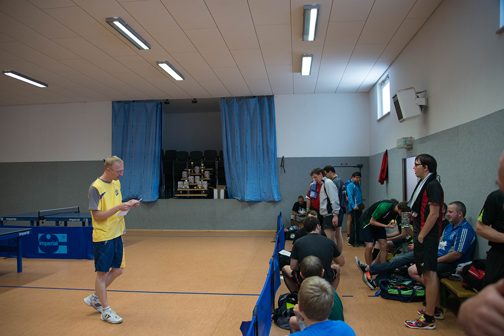Nach der Gruppenphase liest Andy Schmidt die Ergebnisse vor und läutet den Doppelwettbewerb ein