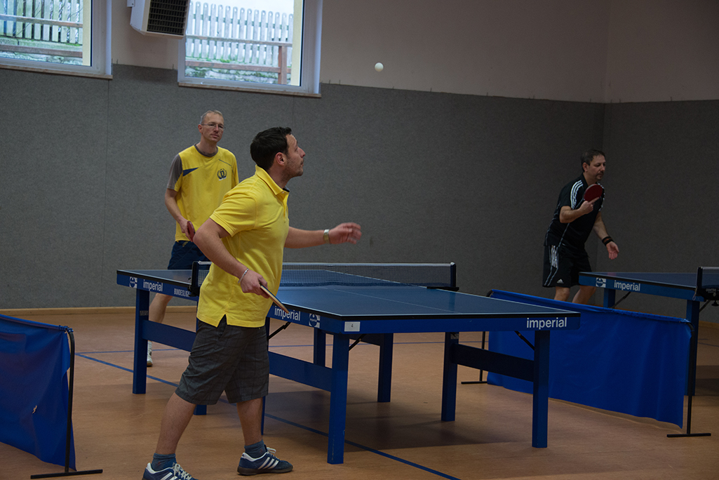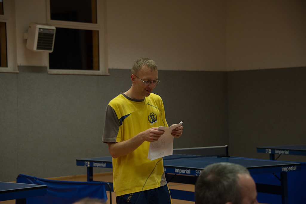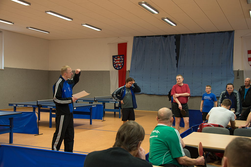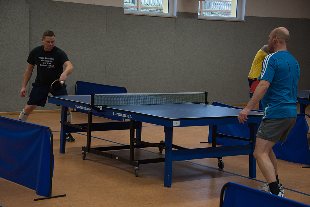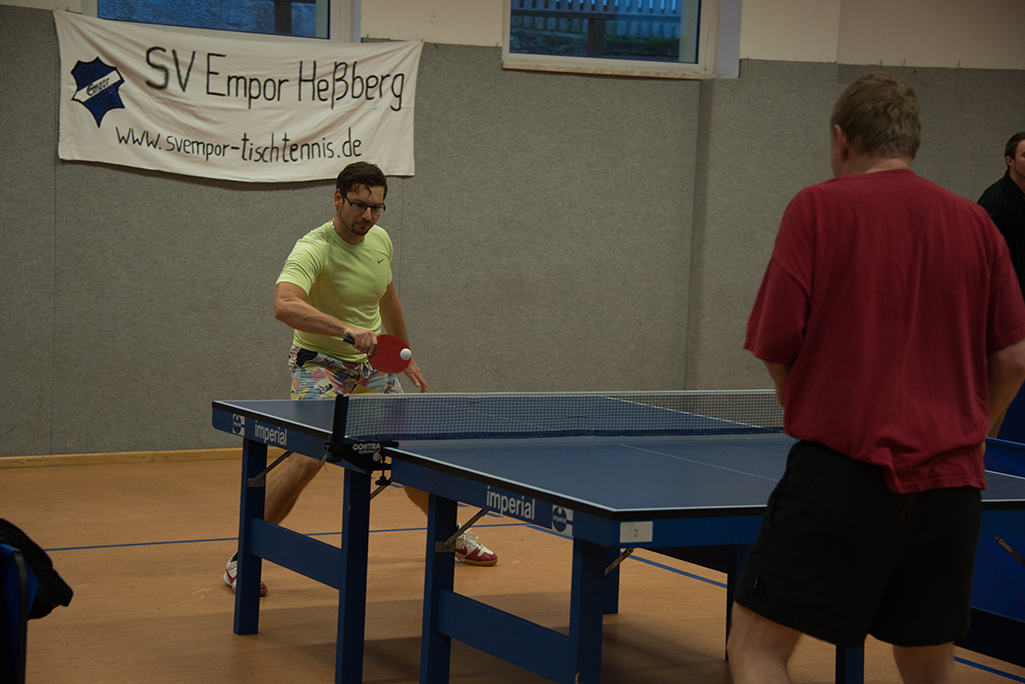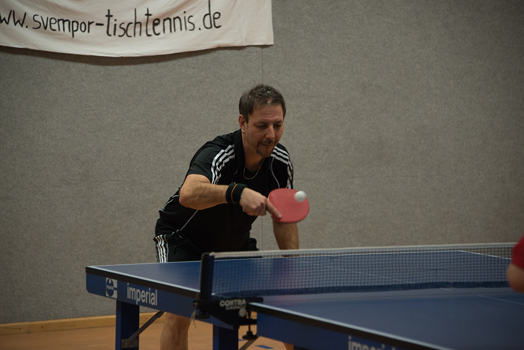 Dann pünktlich um 14 Uhr eröffnet Abteilungsleister, Spitzenspieler und Titelverteidiger Andy Schmidt das Turnier